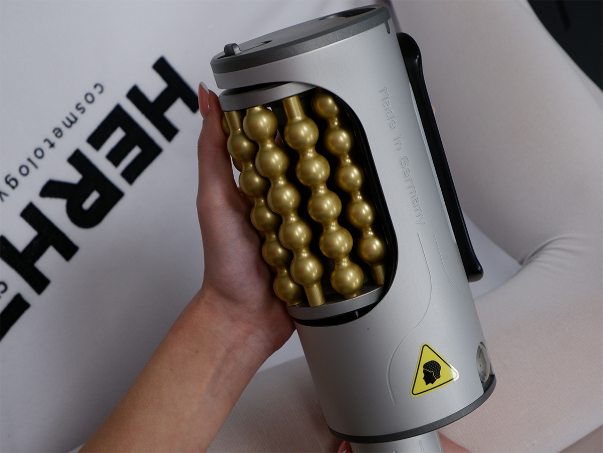 Особливу увагу варто приділити насадці «свердло», яку застосовують у Herhel Clinic. Це унікальна насадка, подібна до макаронини, яка менш травматична за класичні роликові системи, проте дозволяє глибше опрацьовувати тканини, одночасно стимулюючи лімфодренаж і прискорюючи обмін речовин. Завдяки цьому насадка забезпечує виражений ефект у моделюванні фігури та ефективну боротьбу з проявами целюліту.