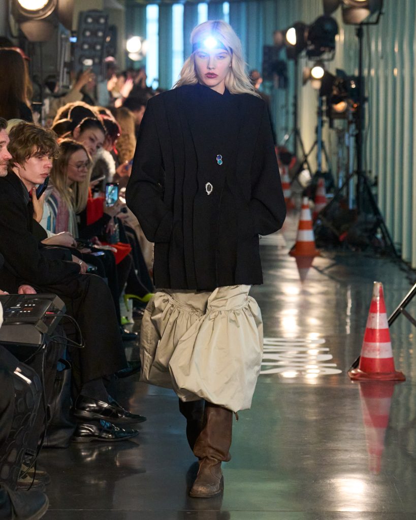 Центральним елементом сезону стає BESAGY BAG – сумка, натхненна традиційними українськими бесагами, двосторонньою торбою, яку історично носили через плече під час далеких подорожей або поїздок на базар. Переосмислена для сучасного мандрівника, вона нагадує про найнеобхідніше, що людина бере із собою в дорогу крізь невизначеність. Упродовж показу ліхтарик постає водночас як практичний предмет і як метафора напряму та виживання. Коли навколо темрява, одне світло допомагає знайти шлях іншому.