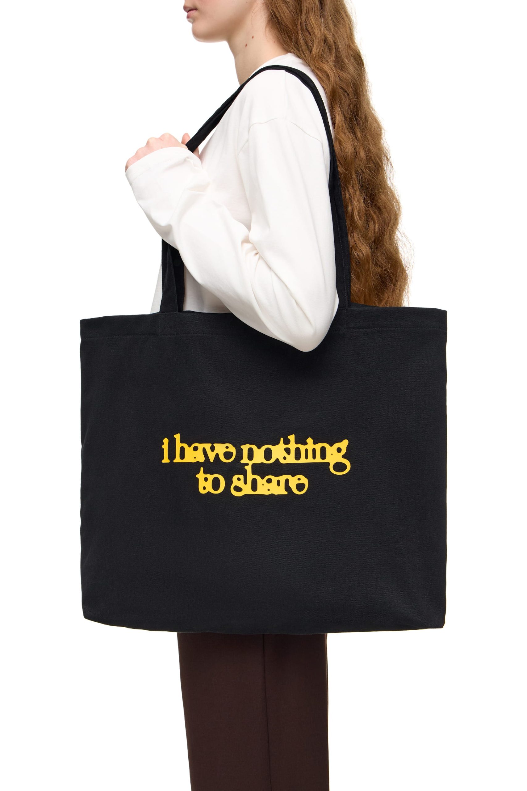 Щоб зберегти мінімалістичність, єдиним принтом у колекції залишається її ж назва: I Have Nothing to Wear на лонгсліві та іронічно обіграна I Have Nothing to Share на шопері.