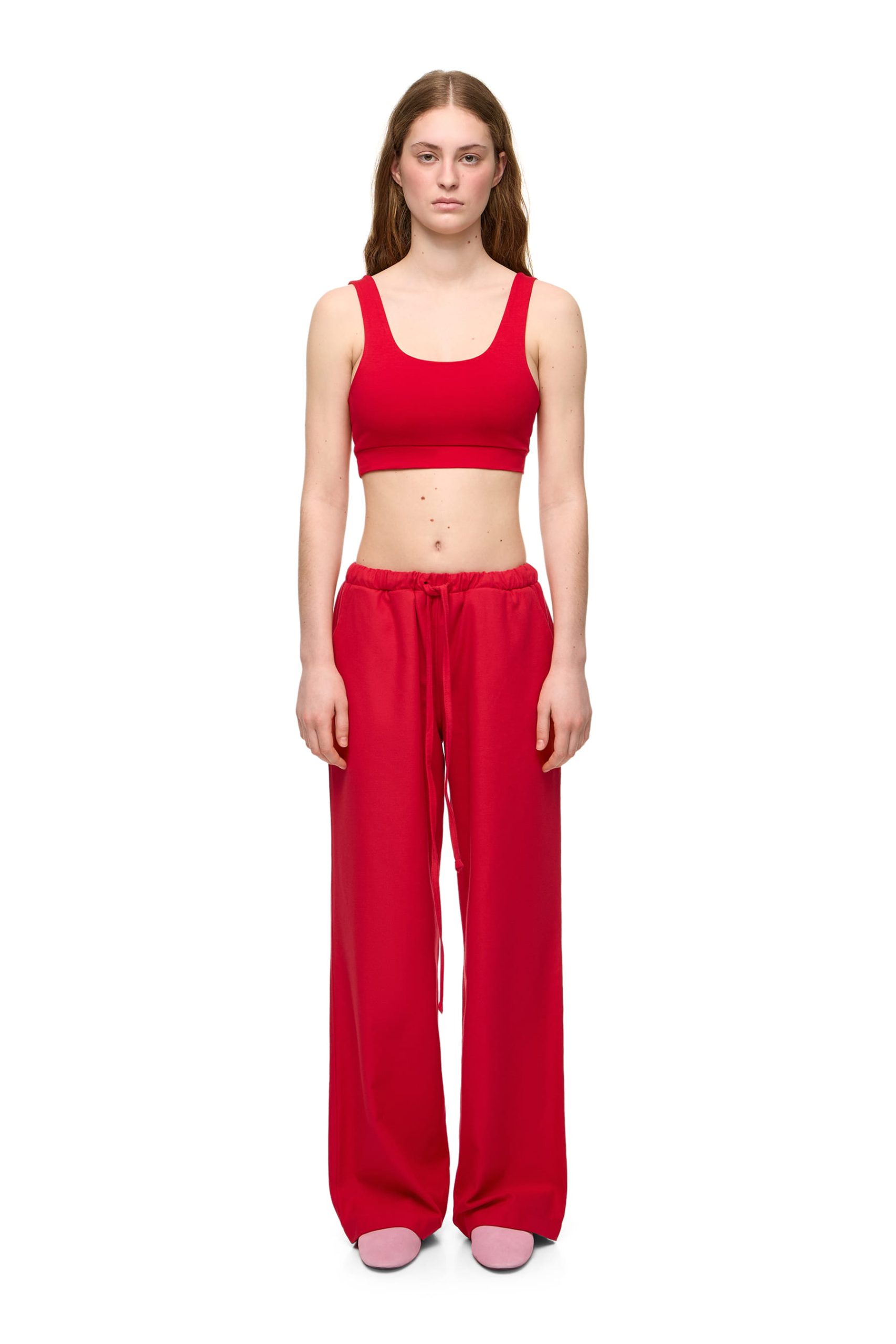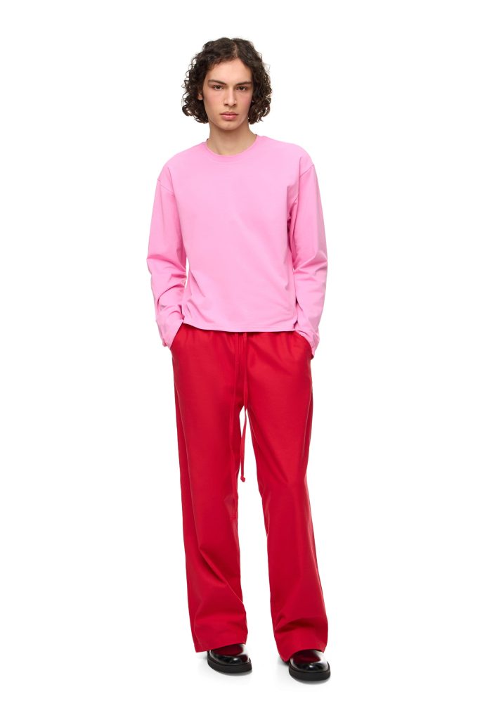 Сет-дизайн підсилює ефект: яскраві кольорові поверхні, імітація неба, тактильні текстури створюють відчуття штучного, трохи сюрреалістичного простору.