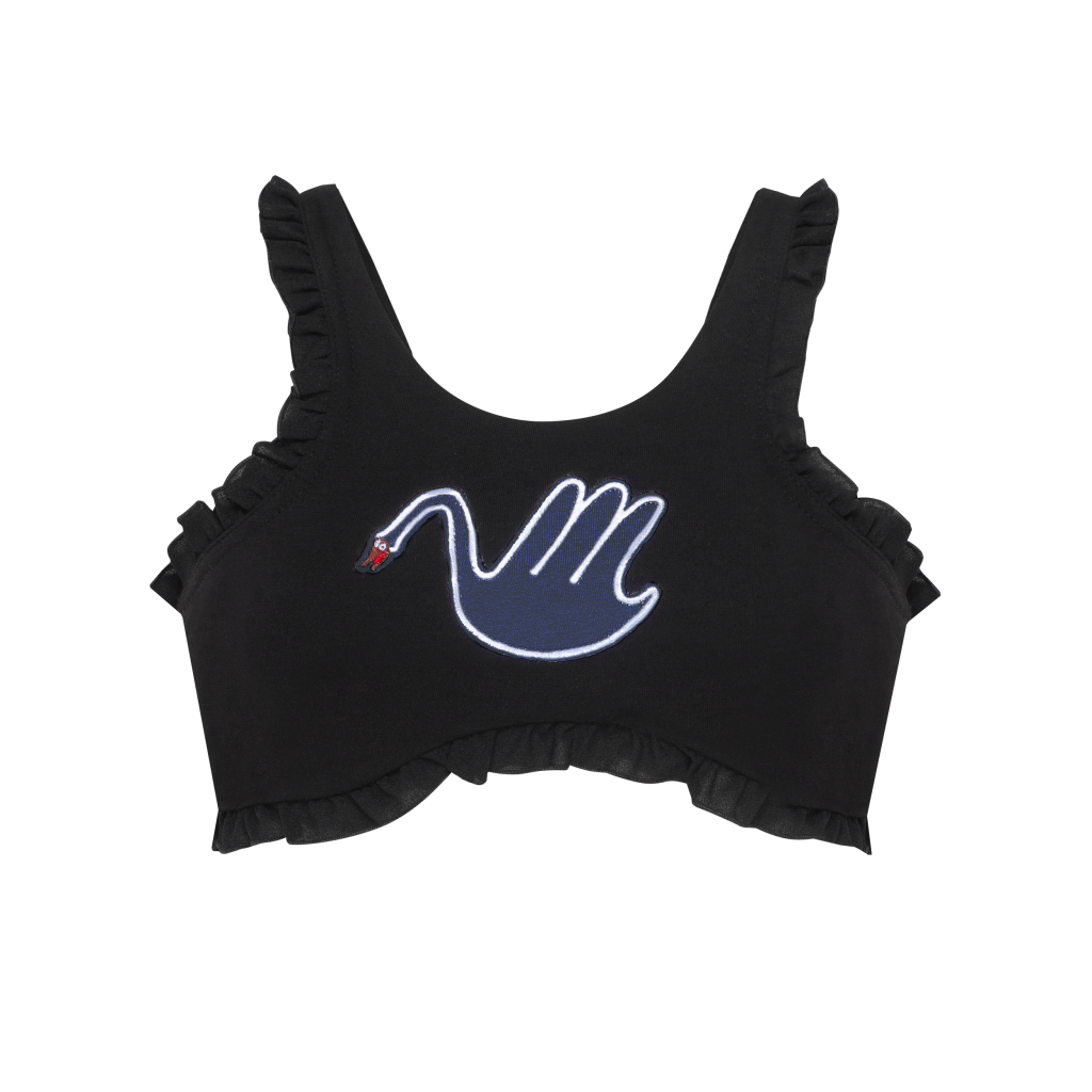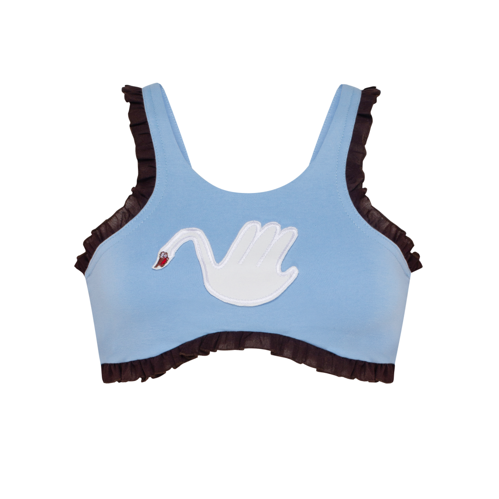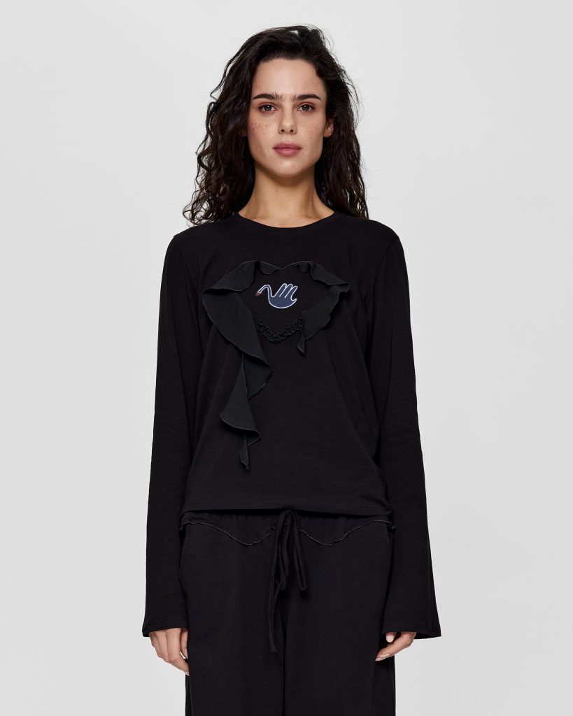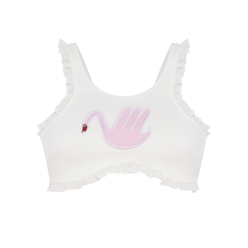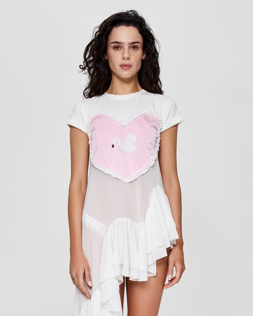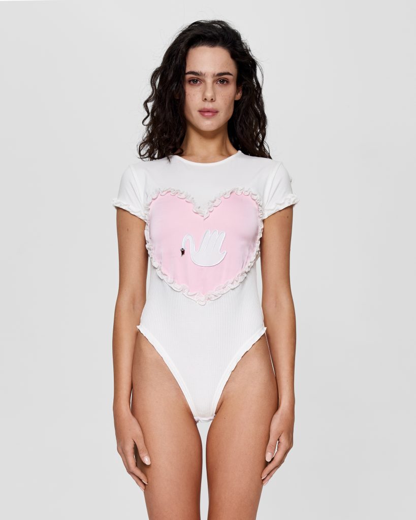 До «Swan in Heart» увійшли справжні предмети мистецтва: топи з лебедем, танга у двох варіаціях – з рюшами та аплікаціями у формі серця, стрінги з лебедем спереду та серцем ззаду, кофти, які стікають хвилястими воланами, а також боді, лонгсліви та штани з аплікаціями-серцем і лебедем.