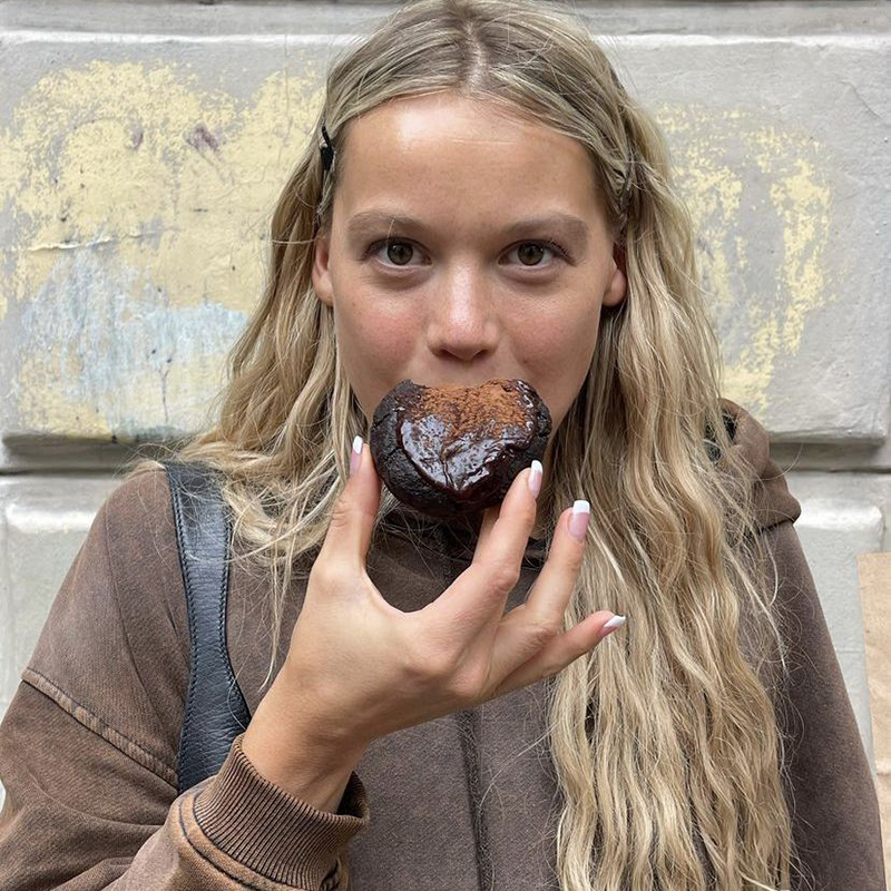 Це брауні де головний смак – темний шоколад, а банан тут як солодкий акцент. Тонкі кружальця зверху під час випікання злегка карамелізуються, середина залишається густою й тягучою, а зверху з’являється глянцева хрустка скоринка.