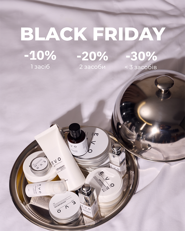 Чорна П’ятниця у EVO derm – час для ідеального beauty-шопінгу! Лише з 28 по 30 листопада усі засоби для волосся, обличчя та тіла від EVO derm можна придбати зі спеціальними знижками, які бувають лише раз на рік.