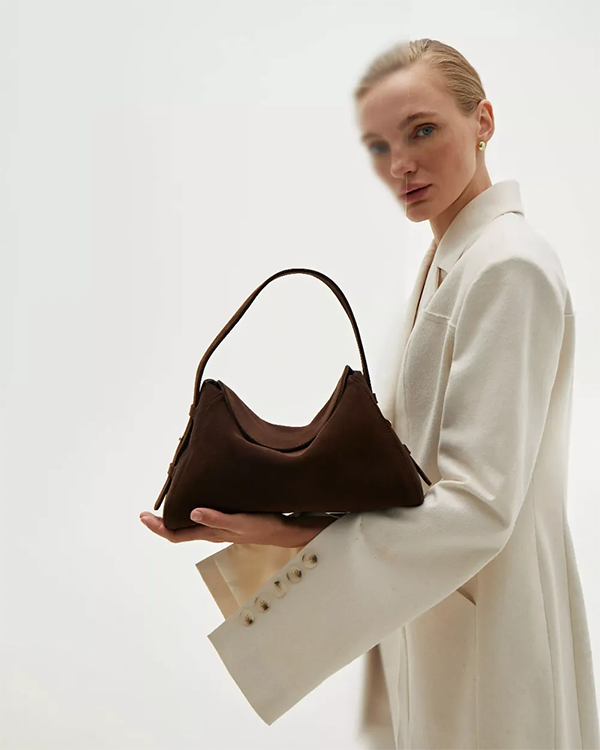 Delight Bag – м’яка замшева сумка з виразною формою та характером. Представлена у насичених і класичних відтінках, вона додає образу текстури й тепла.