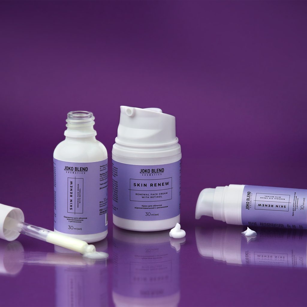 Сьогодні ретинол це must-have компонент для тих, хто хоче бачити в дзеркалі гладку, пружну, сяйливу шкіру. Український бренд Joko Blend створив лінійку Skin Renew, що дозволяє отримати всі переваги ретинолу без ризику подразнення. Це не про агресивні формули – це про відновлення з повагою до природних процесів шкіри. Філософія бренду проста: ефективність має бути безпечною. Виробництво Joko Blend сертифіковане за стандартами GMP, а всі формули розроблені з фокусом на оптимальні концентрації активів, щоб діяти, а не травмувати. Завдяки повному циклу локального виробництва компанія контролює якість кожного етапу – від формули до флакона. Детальніше про кожен продукт лінійки Skin Renew – далі у матеріалі.