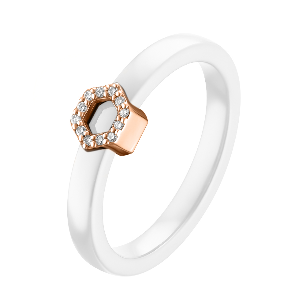 Каблучка з кераміки з червоним золотом та діамантами