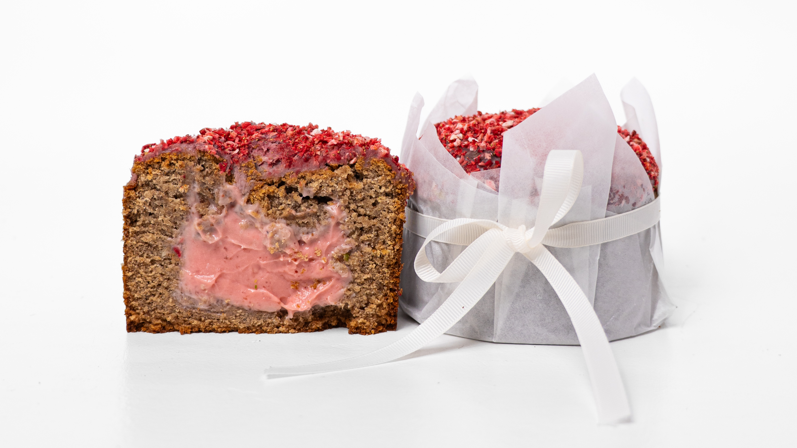 Ароматна, волога з ніжним полуничним кремом всередині та верхівкою із сублімованою полуницею – краш любителів ніжних ягідних смаків.